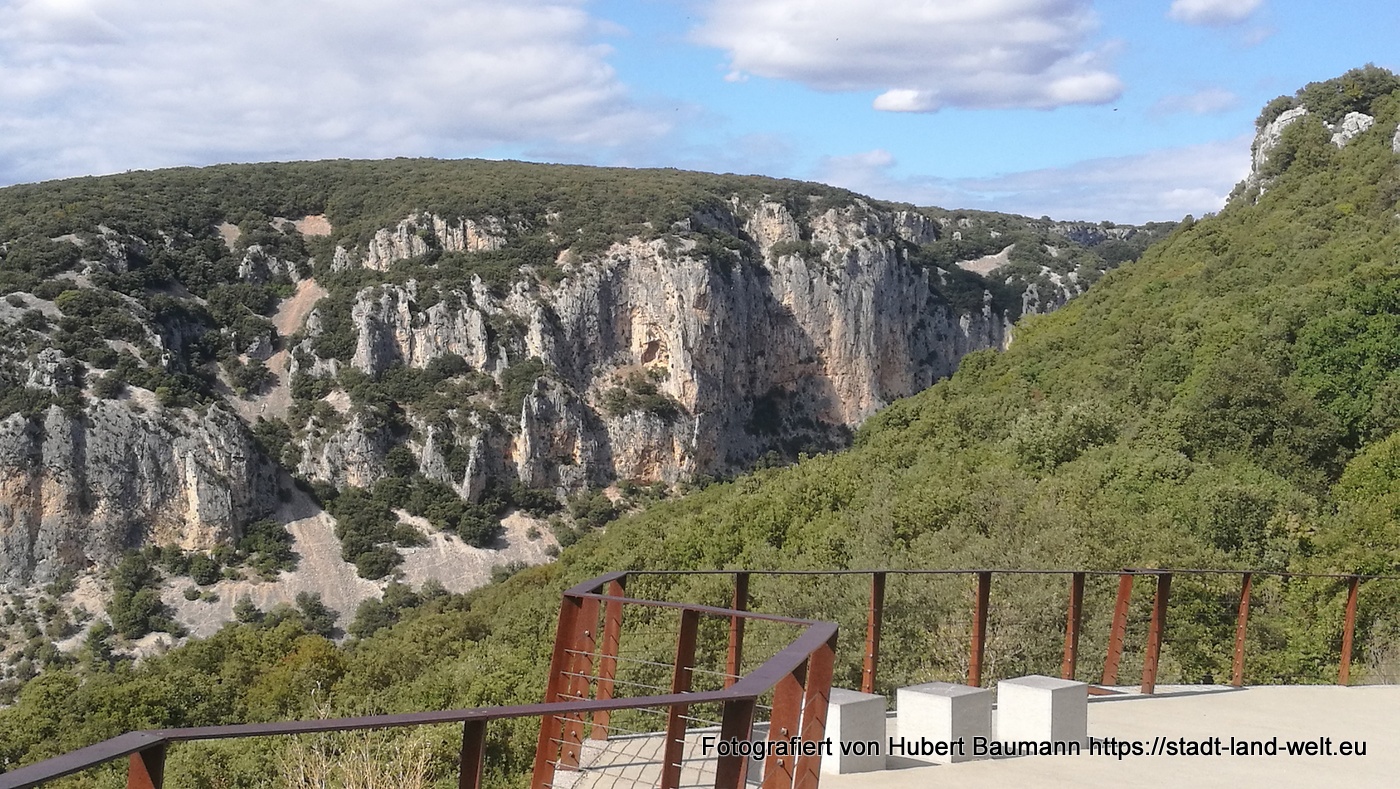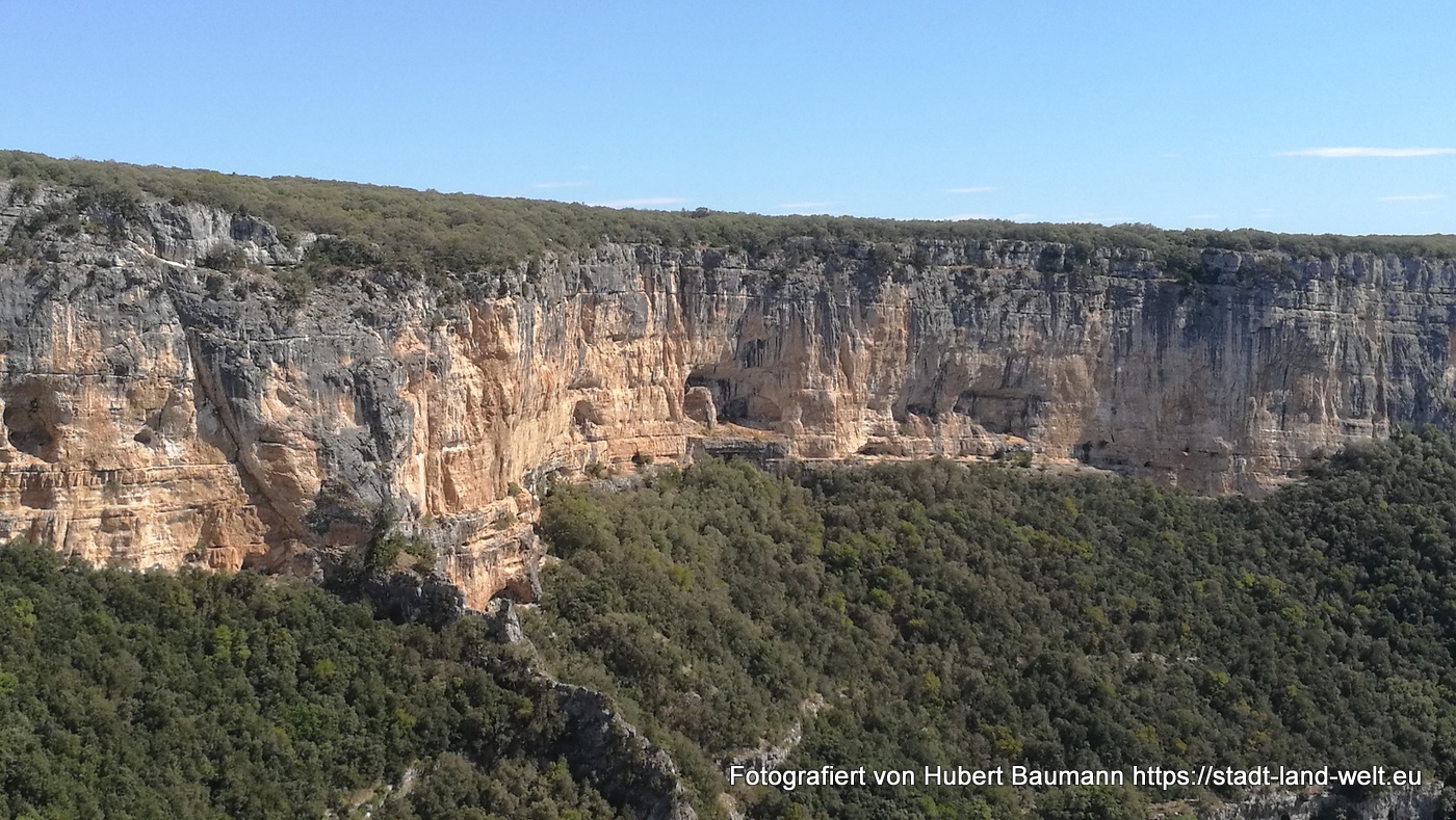Nicht besser oder schlechter: komplett anders ! Enger, wuchtiger, uriger, präsentiert sich unsere Fahrt über die Höhen mit zahlreichen Stopps und Einblicken in die Schlucht. Ich hatte auch den Eindruck: touristisch nicht ganz so überlaufen wie die Schlucht von Verdon. Das kann aber auch daran liegen, dass seit unserer Fahrt durch die Gordes de Verdon zwischenzeitlich wieder eine Woche vergangen ist und wir noch weiter von der Hauptreisezeit entfernt sind.