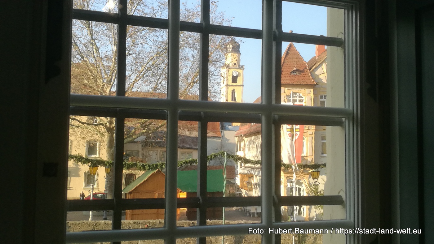 Fensterln einmal anders. Bei meinem Besuch im Deutschordenmuseum anlässlich der Sonderausstellung „Prima Klima“ (siehe gesonderter Beitrag hier) habe ich auch einige Male den Blick durch die zahlreichen Fenster nach draußen gewagt. Das Licht ist jetzt im Winter besonders schön, weil die Sonne sehr flach steht und auffallend lange Schatten wirft.