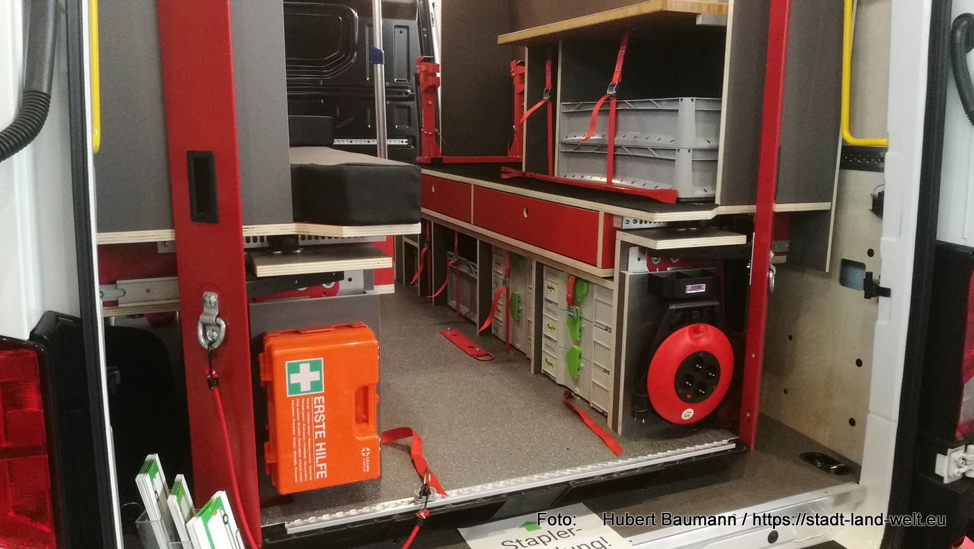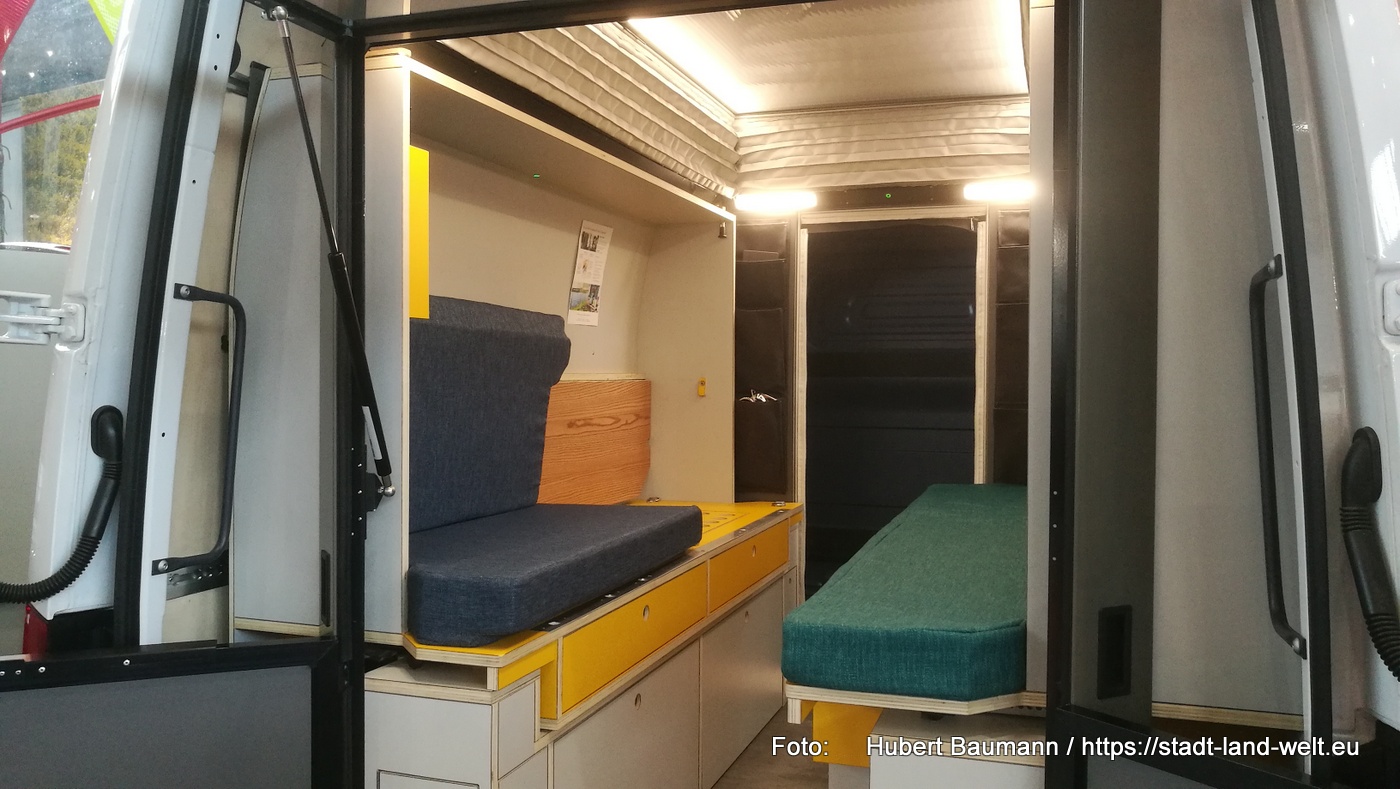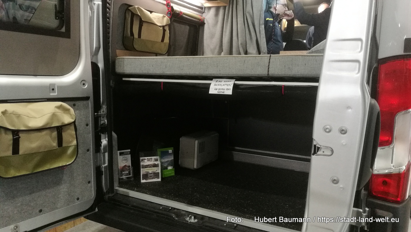 Auch bei PlugVan (siehe hierzu mein Beitrag vom vergangenen Jahr)- hat sich einiges getan. PlugVan produziert ausschließlich Module, die in fertige Kastenwagen eingeschoben werden können. Die Module sind flexibel und so im Grunde zusammen mit den meisten gängigen Transportern einsetzbar. Das Unternehmen adressiert damit vorzugsweise Handwerker und andere Menschen, die sowieso einen Kastenwagen haben und diesen für den Urlaub nutzen wollen. Ebenso Leute, die sich lediglich für den Urlaub ein Fahrzeug leihen, aber ihren eigenen Innenraum nutzen wollen. Das im vergangenen Jahr noch prototypmäßige Modul wurde im Design optimiert.