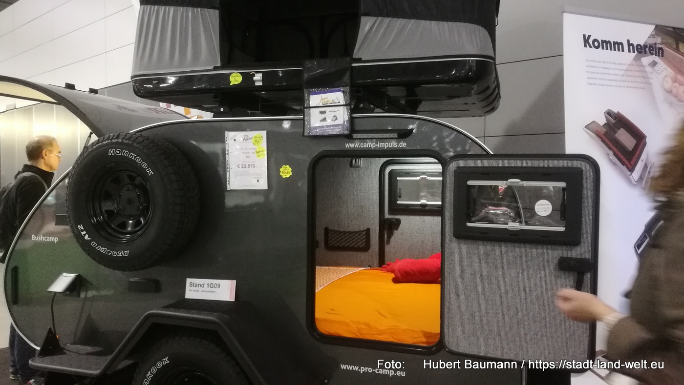 Deutlich mehr Vielfalt, noch spezieller auf die individuellen Reisegewohnheiten zugeschnitten. Kastenwagen, teils deutlich moderner eingerichtet mit einem Hang zur Extravaganz, teils etwas kleiner für mehr Mobilität, teils etwas größer und breiter für mehr Bewegungsfreiheit, vielfach mit Aufstelldach und mit mehr Kopffreiheit. Ebenso im Bereich von Dachzelten und aufklappbaren Anhängern gab es nach meinem Empfinden ein deutlich größeres Angebot. Ob diese Modelle alle ihren Markt finden oder sich in einer Nische platzieren werden, die nur wenige Individualisten bedient, bleibt zu beobachten. So muss ich zwangsläufig im kommenden Jahr wieder kommen und berichten.