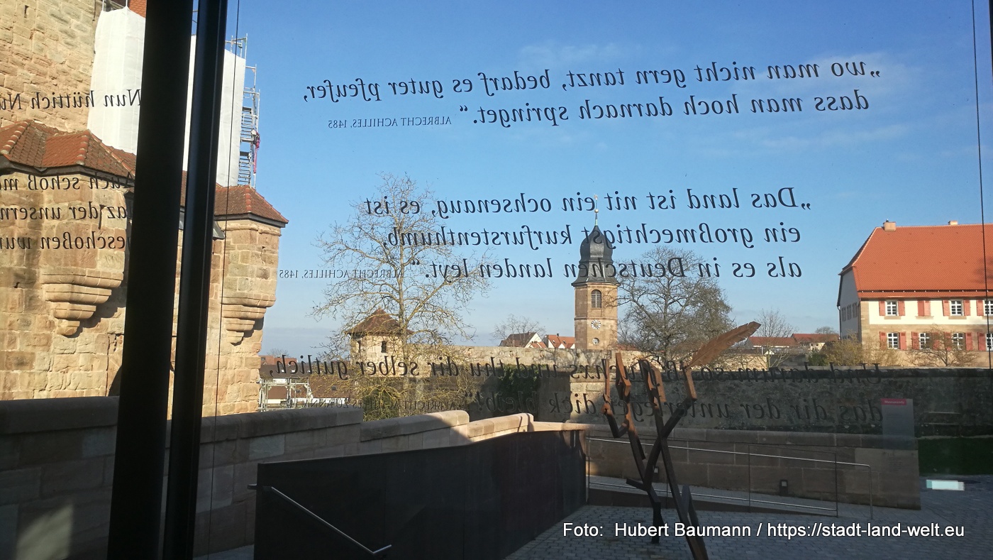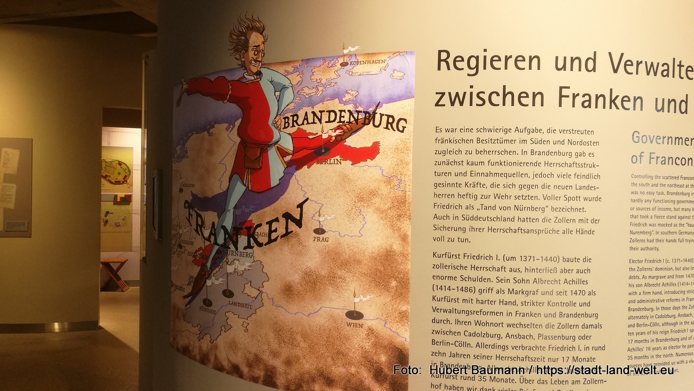 Etwas mehr Zeit kann und darf man sich für die Burg, die Hohenzollernveste nehmen, die ihrem Namen als Erlebnisburg alle Ehre macht. In zahlreichen Filmen und Animationen erlebt man das Leben von damals live. Bereits beim Betreten der Burg über die Zugbrücke hört man über einen Lautsprecher die herannahenden Reiter und ich erwische mich dabei, auf die Seite gehen zu wollen, um ihnen Platz zu machen. Beim Flanieren durch die unterschiedlichen Räumlichkeiten ertönt Tanz- und Kirchenmusik.