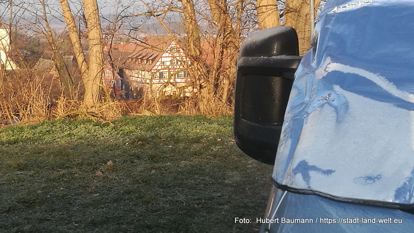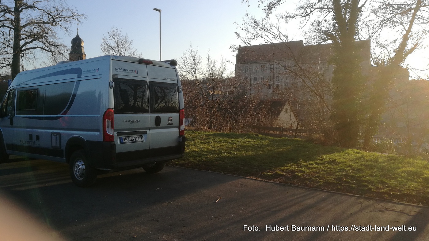 So sind wir nicht nur wesentlich früher, sondern auch deutlich budget-schonender in Cadolzburg angekommen. Unseren Übernachtungsplatz auf dem Festplatz Höhbruck in Cadolzburg haben wir bereits gegen 14:00 Uhr bezogen. Der Platz liegt am Rande der Altstadt auf dem Festplatz, etwas erhöht und mit einem herrlichen Blick auf die Hohenzollernveste und den etwas tiefer liegenden Teil der Stadt.