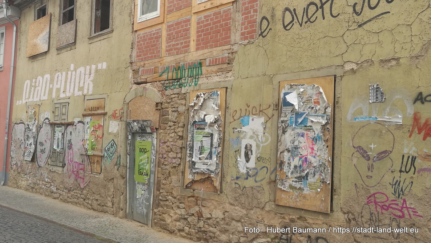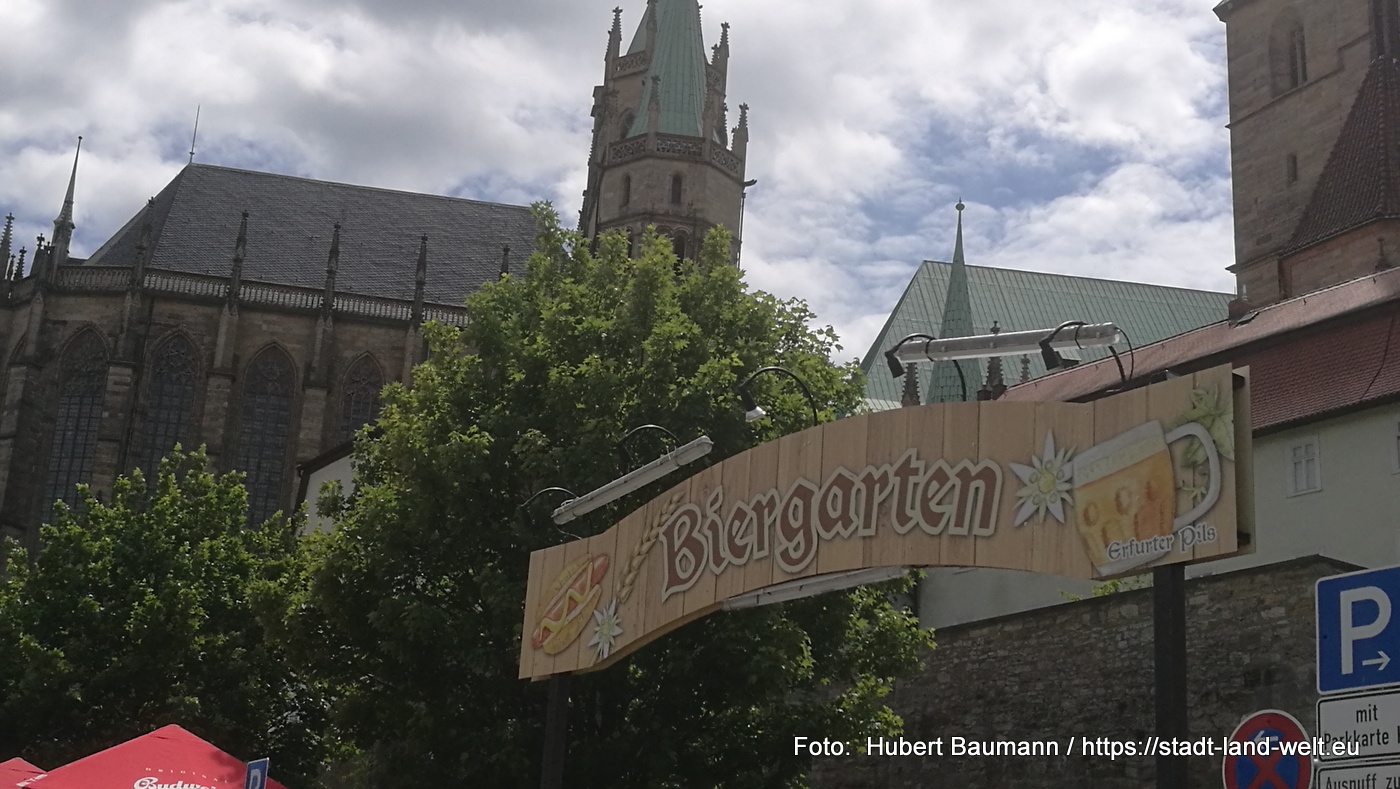 Von einer Fahrt mit dem Fahrrad in die Innenstadt riet unser Gastgeber ab. Zum einen sei das Fahrradnetz in Erfurt nicht allzu gut ausgebaut, zum zweiten sei im Zentrum ohnehin weitgehend Fahrradverbot und zu guter Letzt seien auch die zahlreichen Straßenbahnschienen nicht zu unterschätzen.