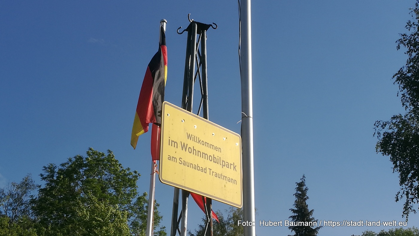 Wir haben uns kurzfristig entschieden, nicht den ursprünglich geplanten kostenlosen Stellplatz an der Thüringenhalle anzufahren, sondern unser Glück zunächst am am Stellplatz des Saunabades Trautmann zu suchen.