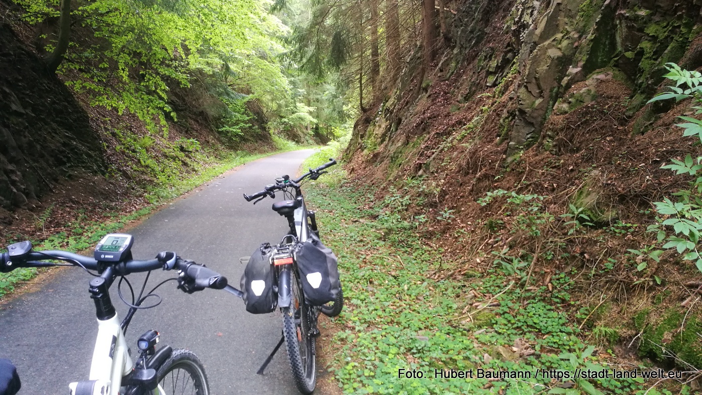 Nach unserer Bahntrassentour rund um den Kyffhäuser geht es heute erneut auf einen Bahntrassenradweg. Dieses Mal führt uns unsere Tour von Schmalkalden über Floh-Seligenthal. Der Weg geht über den gesamten Verlauf steil bergauf. Zusammen mit unserem kleinen Umweg über den Mommelstein sind wir knapp 40 km geradelt und haben fast 800 Höhenmeter überwunden. Ein Lob auf das Pedelec.