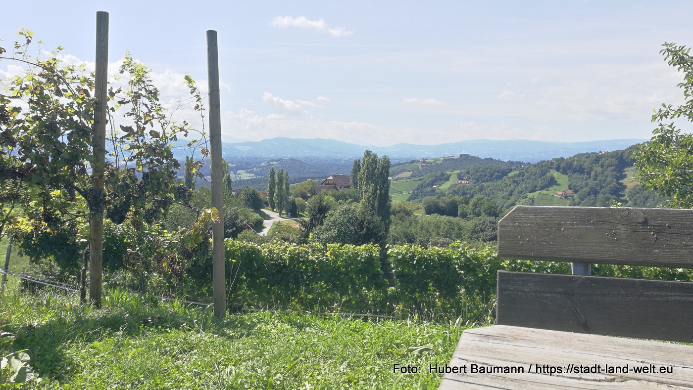 In einer kurvenreichen Strecke den Berg hinauf bis sich oberhalb der Waldgrenze die Weinberge ausbreiten und man einen wunderschönen Blick über die Weinberge bis ins Tal genießt. Die zypressenartig wirkenden Bäume geben der Region der steirischen Weinstraße den Namen der „steirischen Toskana“. Vom Sausal aus dort aus geht es weiter zu unserem nächsten Basislager, dem Weinbau Grill an der südlichen Weinstraße.
