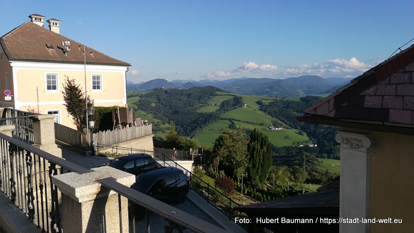 Es war bereits kurz vor 16:00 Uhr. Doch eine schnelle Runde mit dieser grandiosen Aussicht wollten wir uns nicht nehmen lassen. Die Sonntagberg auf dem gegenüberliegenden Hügel sei über den Panorama-Höhenweg gut zu erreichen. Auch gäbe es eine Abkürzung, bei der man nicht ganz ins Tal zurück muss.