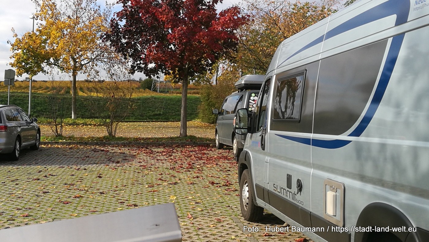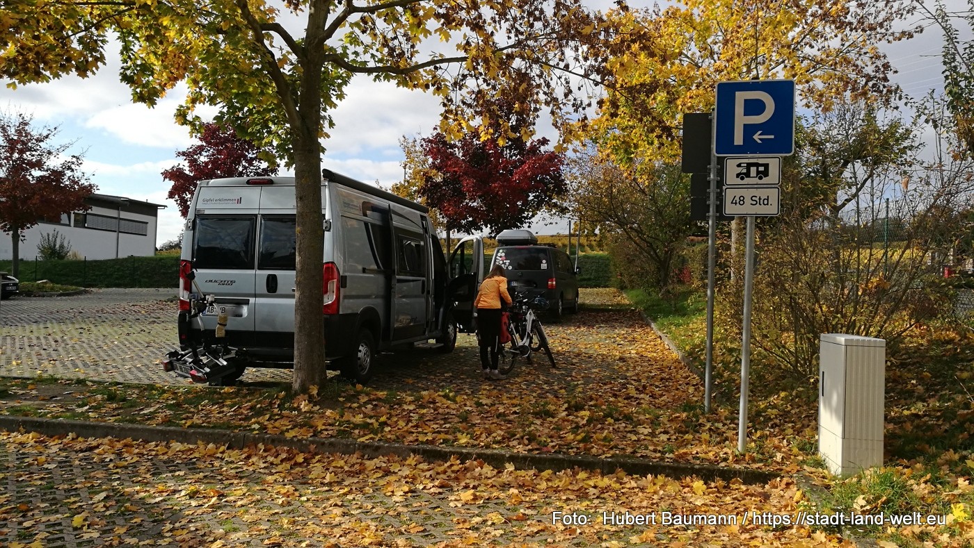 Unser geplantes Basislager, den kleinen Wohnmobilparkplatz im Ortsteil Winkel am Feuerwehrhaus kannten wir bereits von vorherigen Aufenthalten. Der Platz ist kostenlos, leicht abschüssig und verfügt über eine Stromsäule für 6 Anschlüsse. Weitere Ver- und Entsorgemöglichkeiten gibt es leider keine.