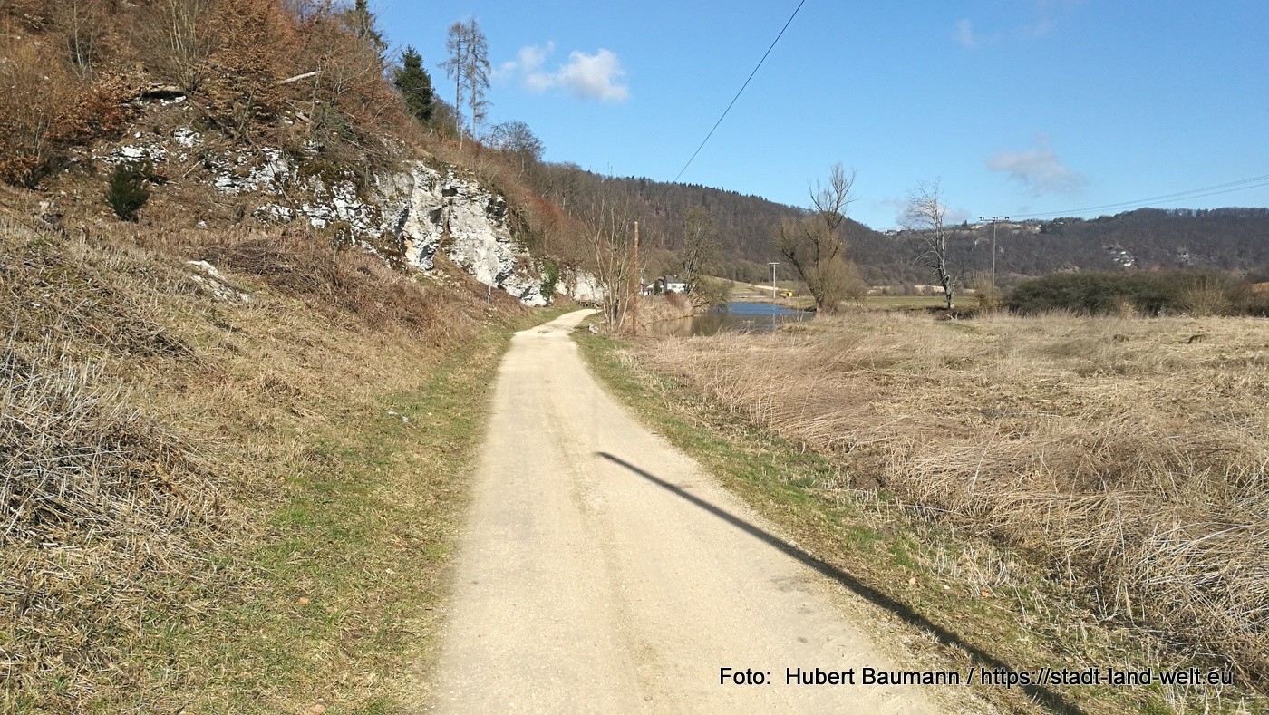 Die Fahrt durch das Schuttertal wirkte auf uns weniger spektakulär, wie wir uns dies vorgestellt hatten. Einfach ein weitläufiges Tal mit vielen Wiesen. Zudem wurde der Radweg ab Nassenfeld deutlich schlechter. Der helle Lehmboden, zum Teil noch nass von der Schneeschmelze, hinterließ nicht nur an unseren Fahrrädern deutliche Spuren.