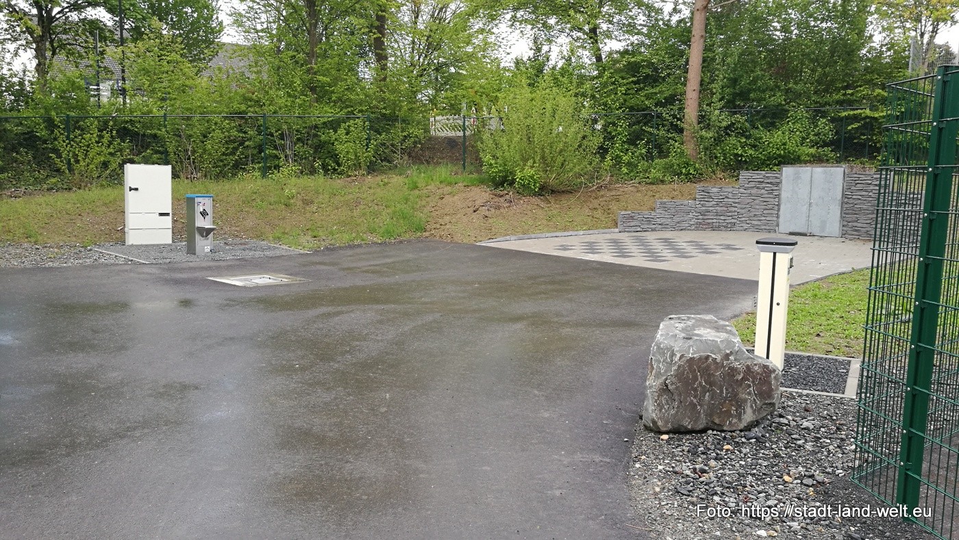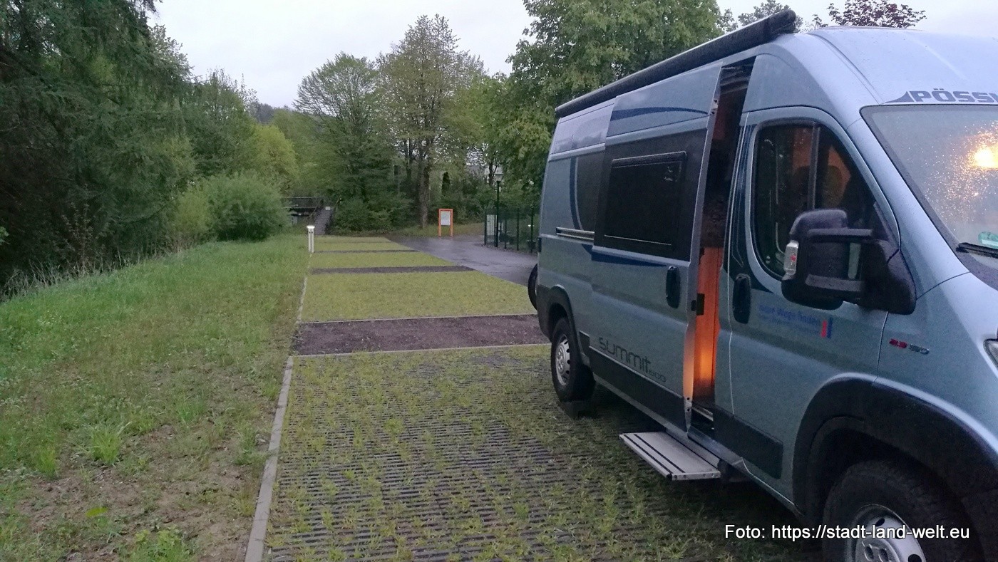 Ich erreiche mein für die kommenden Tage ausgesuchtes Basislager am Kurpark in Eslohe gegen 13:00 Uhr. Der Stellplatz ist kostenlos und bietet ausreichend Platz für 5 Mobile und ist komplett neu angelegt. V+E ist vorhanden, Frischwasser und Strom gegen Gebühr.