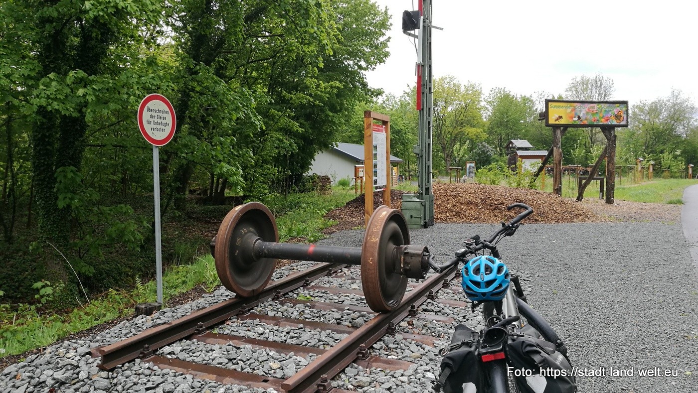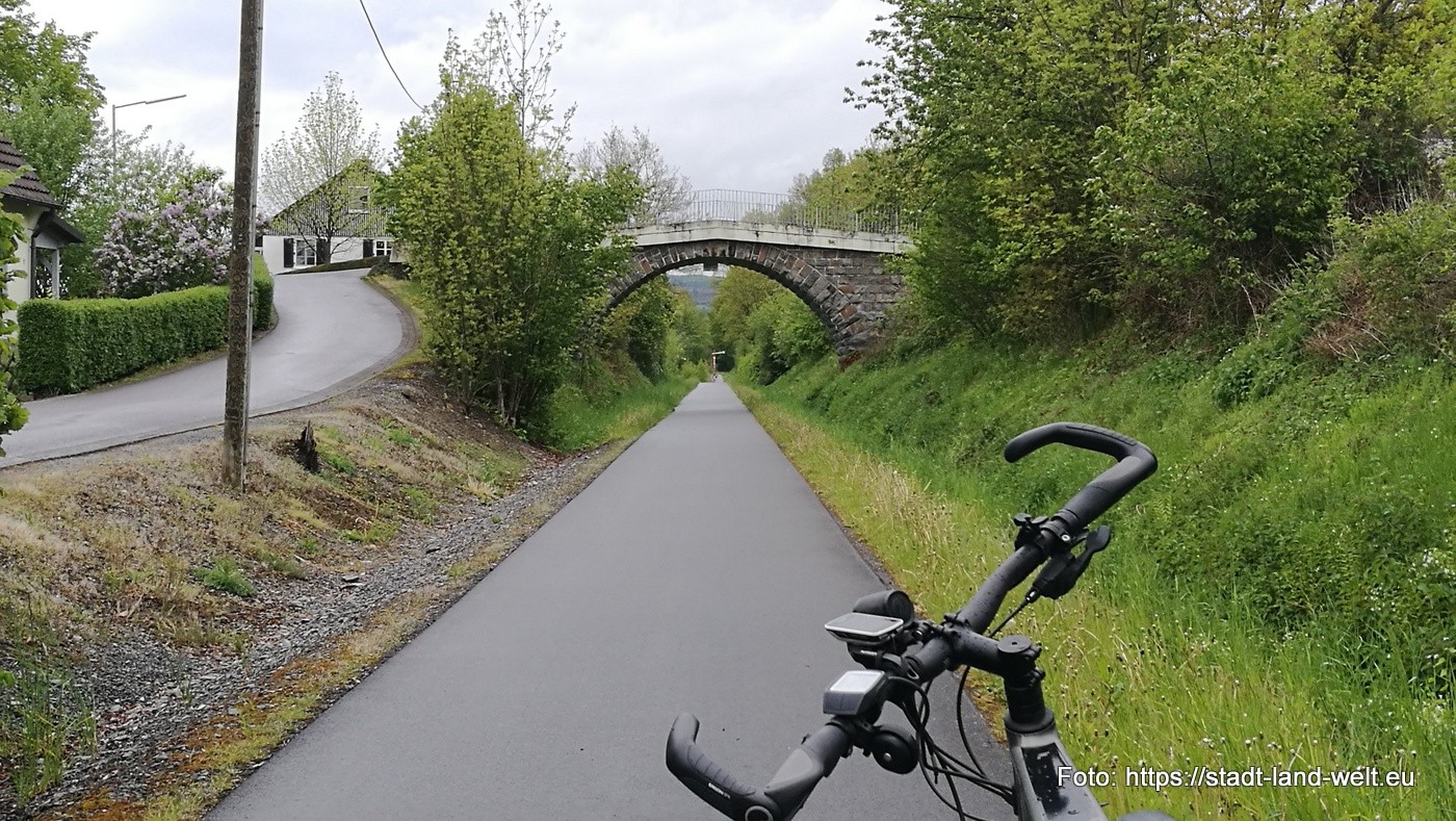 Rund 77 km mit 550 Höhenmeter werden es heute sein, also viel hoch und runter. Temperatur zwischen 5 und 9 Grad, teilweise etwas Regen, aber verkraftbar. Auch dieser Radweg läuft größtenteils über alte Bahntrassen.