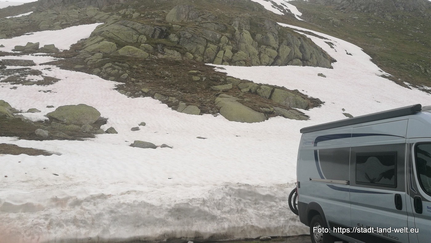 Ergänzend entsteht gerade auf der anderen Seite der Durchgangsstraße ein weiterer Stellplatz. Auch wenn Stellplätze in der Schweiz ansonsten eher rar sind (wie hier berichtet), hat der von den Passfahrten erschöpfte Wohnmobilist zumindest in Rona die Qual der Wahl.