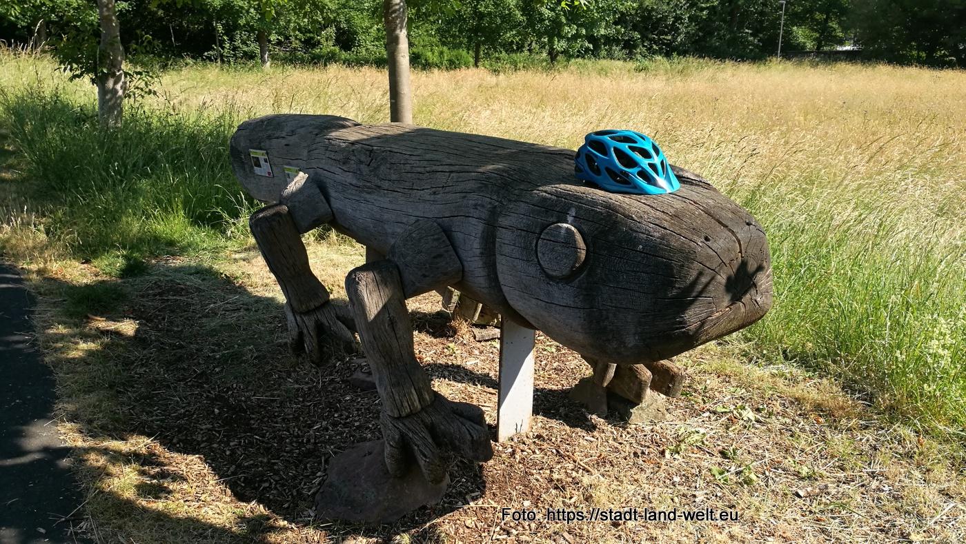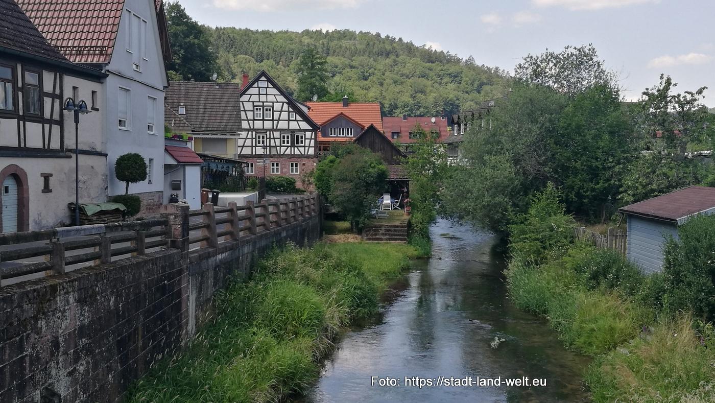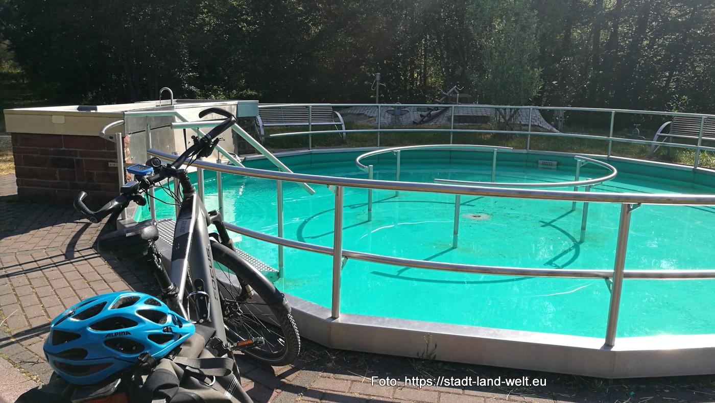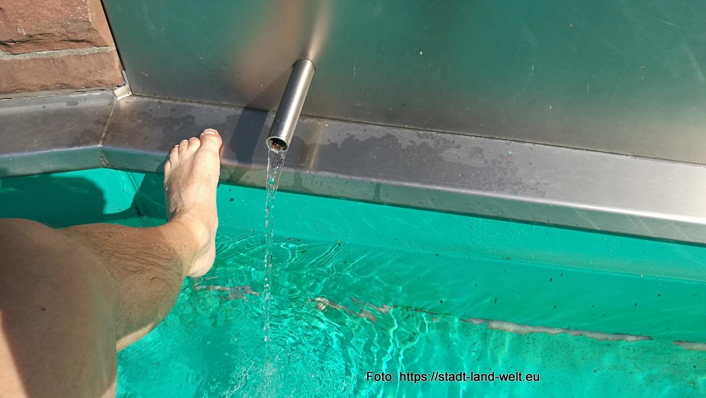 Von hier aus geht es zunächst talaufwärts der Lohr entlang. Erster Zwischenstopp in Frammersbach schon nach fünf Kilometern: Diese geniale Wassertretanlage muss ich einfach ausprobieren !