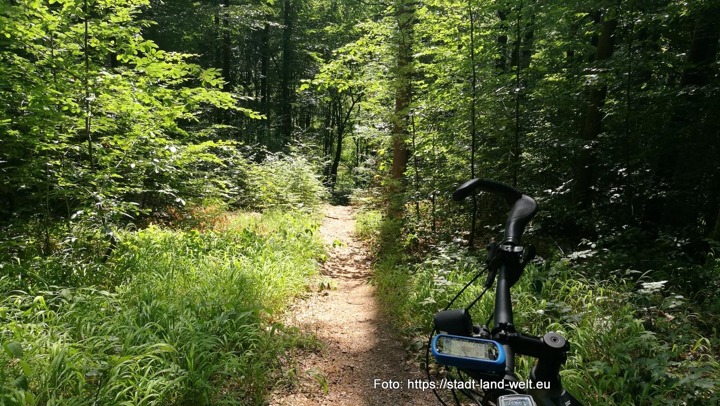 Die Route verläuft überwiegend im Wald. Also für heiße Sommertage absolut empfehlenswert, obwohl man auch hier auf den Steigungen ordentlich ins Schwitzen kommt. Mit unseren Pedelecs ist dies zum Glück aber nur ein Komfort-Problem.